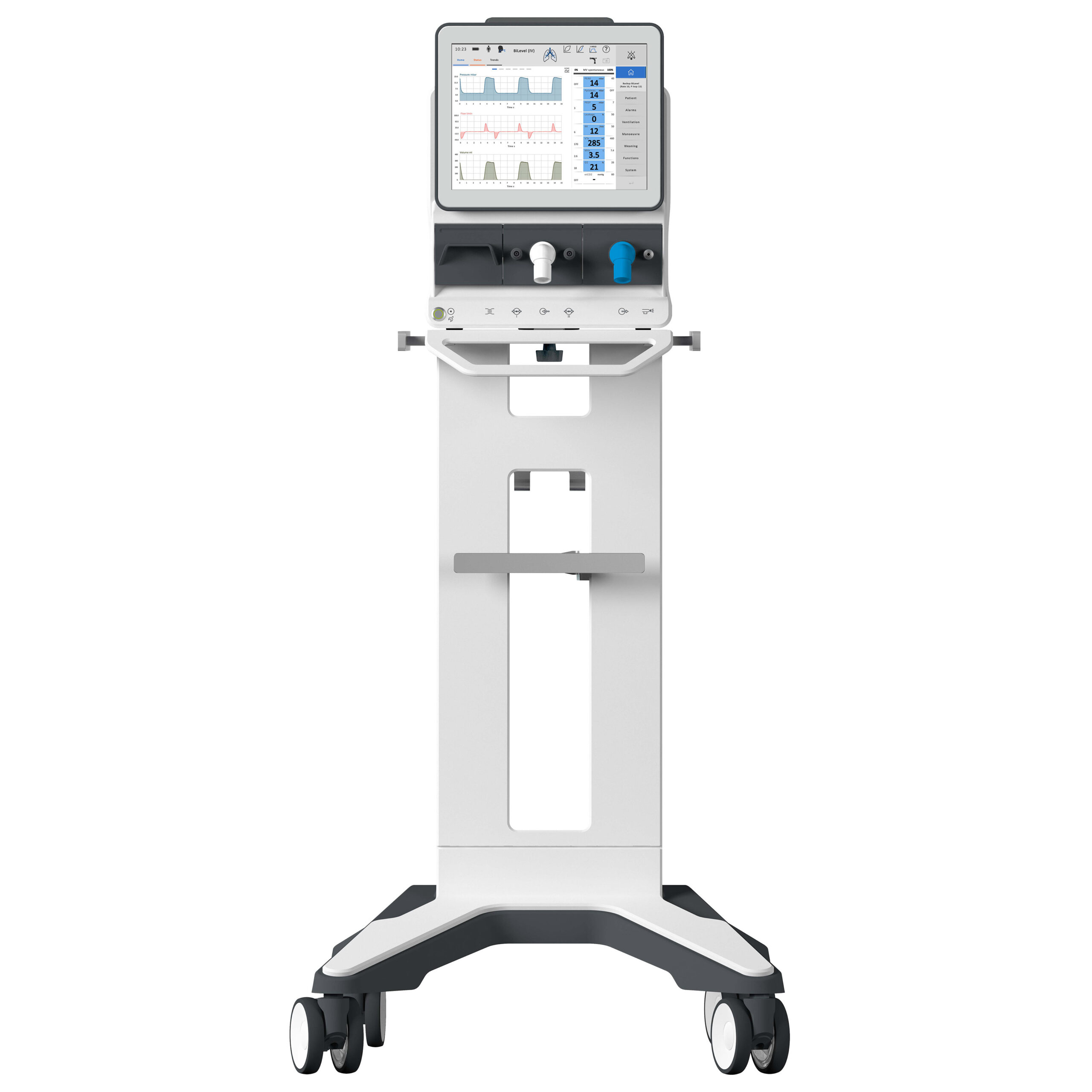 iespējām. Tas piedāvā gan invazīvo un neinvazīvo ventilāciju, gan arī augstas plūsmas